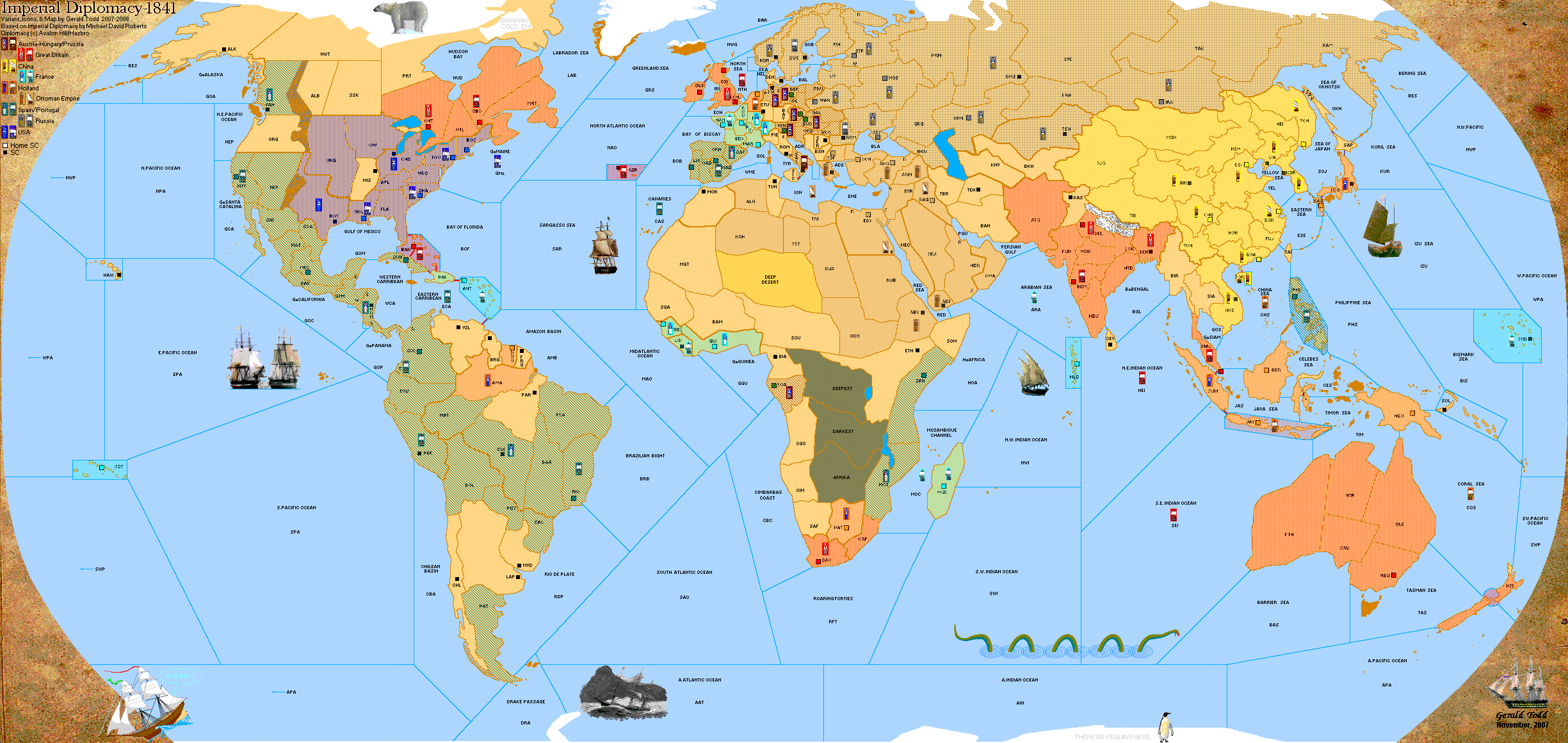 Britain: A London, F Quebec, A Ontario, F Bahama Islands, A Cape Colony, F Bombay, A Delhi, F Malaysia, A Bengal, F North Sea, F The Azores, F N.E.Indian Ocean, F S.E.Indian Ocean.