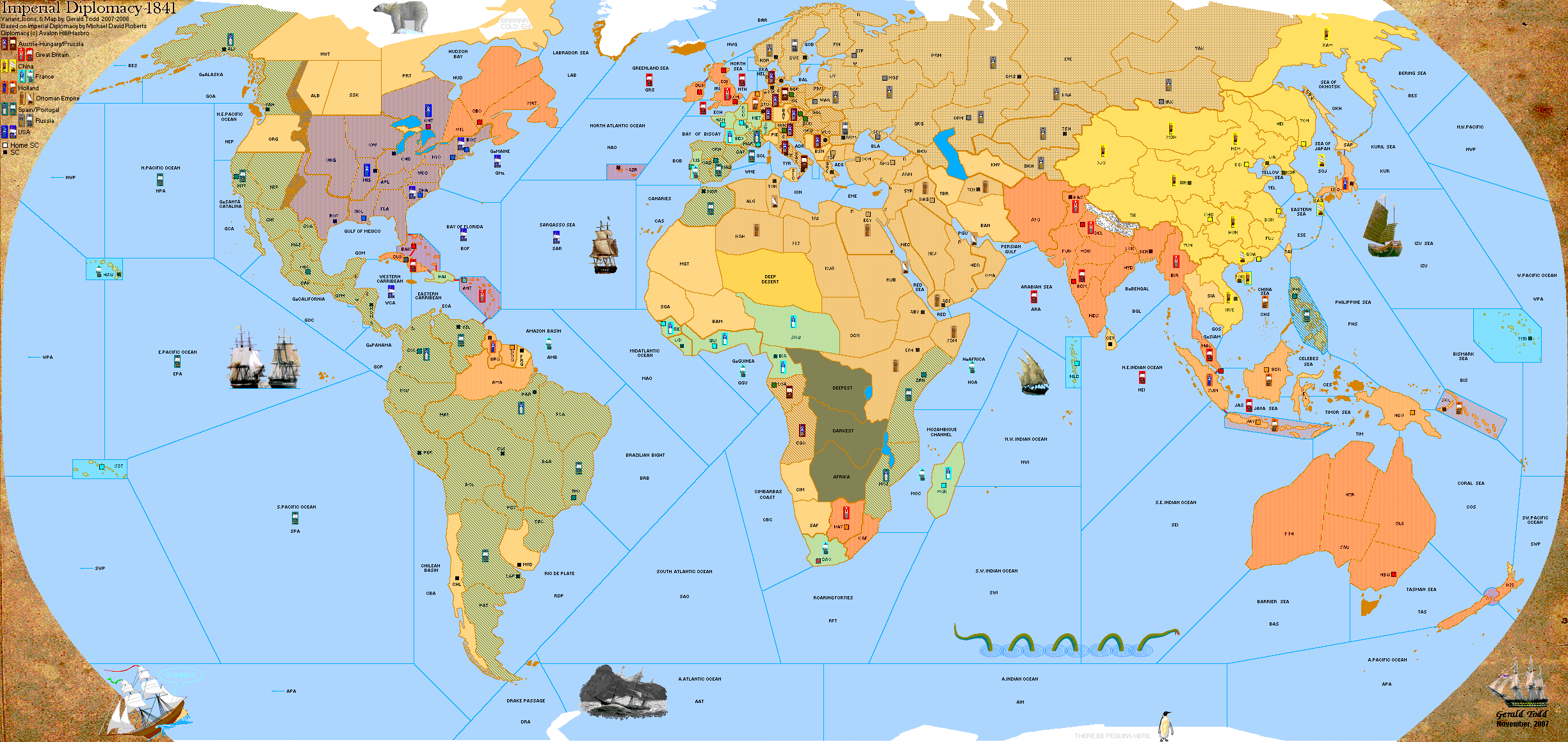 Holland: F Holland, F Java, F Borneo, A Edo, F Solomons, A Sumatra, A British Guiana, F China Sea.