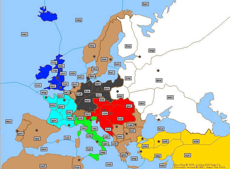 Spring 1901 deadline is Monday March 28th at 3 PM EST which is 7:00 PM GMT. There is a map attached. Feel free to ask me to check your abbreviations to make sure I understand them. I'm happy to help with any game rules or questions.