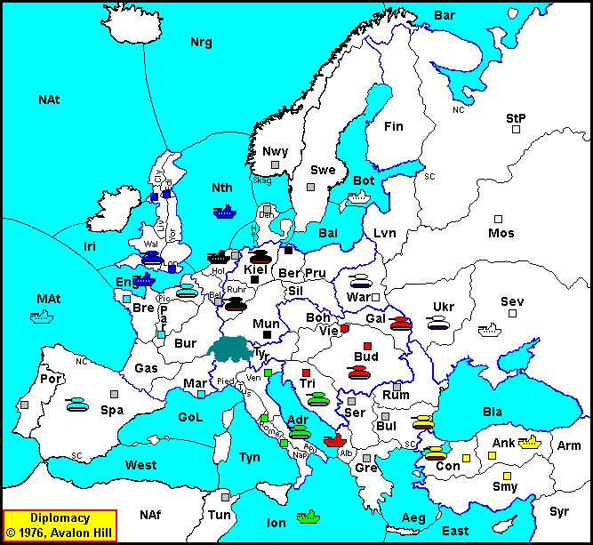 Diplomacy games may contain lying, stabbing, or deliberately deceiving communications that may not be suitable for and may pose a hazard to young children, gullible adults, and small farm animals.
