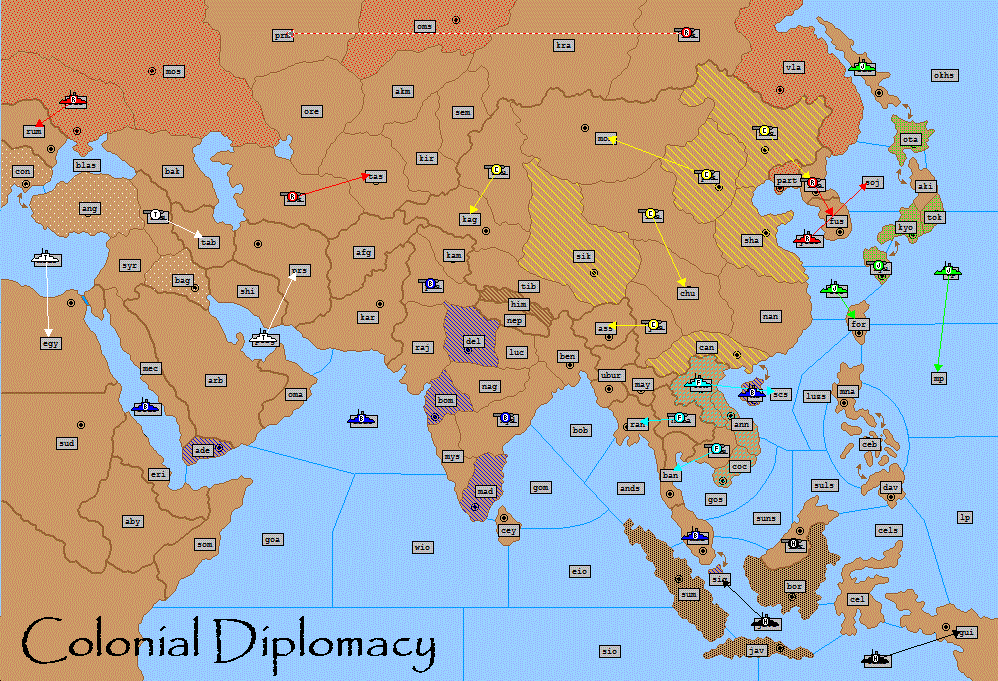 As our first year draws to a close, the powers are still consolidating their hold over their respective territories, and war has not reared its ugly head. China is the big winner in 1870, doubling in size. Are they looking allies, or more territory?