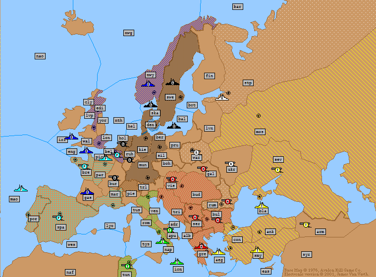 As a side note...PLEASE remember to copy the orders box on ALL orders. I will be able to do this Thursday's adjudication...HOWEVER, I will NOT be able to do Friday's build/other orders NOR Monday's Spring turn. I will be in sunny Jamaica and won't really care about your tribulations...love ya, but not THAT much.