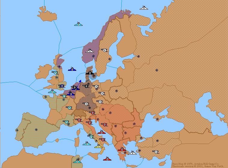 The English Fleet in Holland had only one province to retreat to, so I took the liberty of retreating it into Helgoland Bight. If you'd rather move the Fleet OTB, let us know within 24 hours Mark.