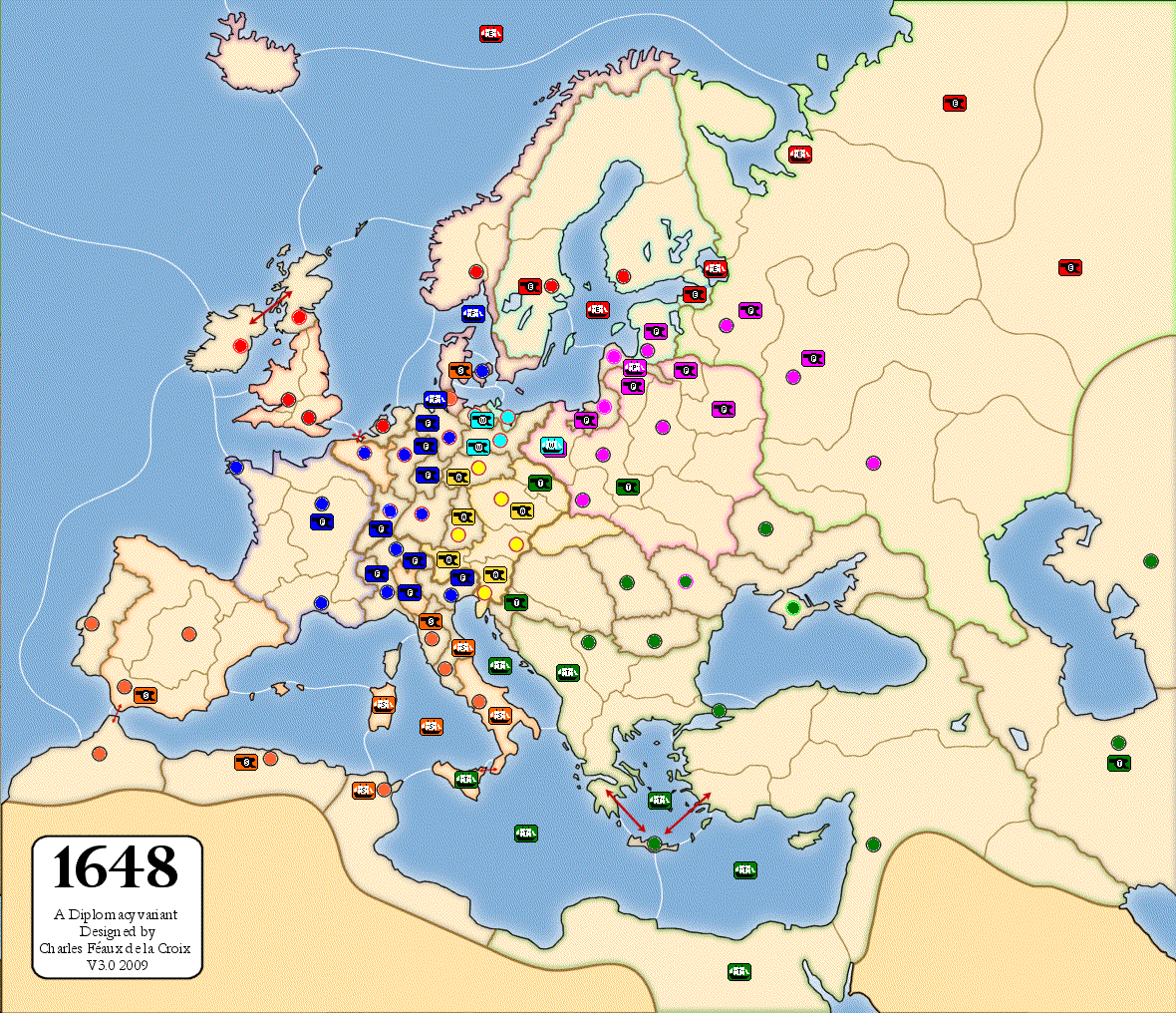 What about the Empire? Well, French troops now also control Holstein as the Spanish Army of Flanders has continued its long trek up into Jutland. Louis XIV now has reason to hope that the eight German electors shall convene later in the year to bestow the Imperial Crown upon the Most Christian King (provided the territorial status quo is maintained through the year's fall).